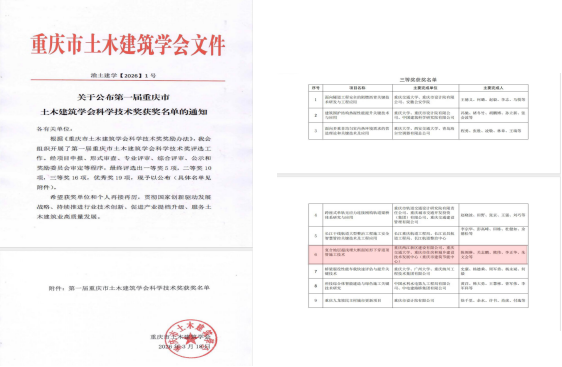 来源:质量技术部 林彬 发布日期:2026/3/26 【打印此文】近日,重庆市土木建筑学会公布首届科学技术奖获奖名单,重庆两江新区建设有限公司联合重庆交通大学等单位研发的《复合地层超浅埋大断面矩形下穿道顶管施工技术》荣获三等奖。该技术针对复杂地质条件下地下空间开发难题,创新施工工艺,显著提升工程安全性与效率,彰显公司在智能数字建造领域的核心技术实力。
