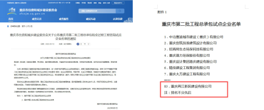 喜报!两江建设公司成功入选重庆市第二批总承包试点企业